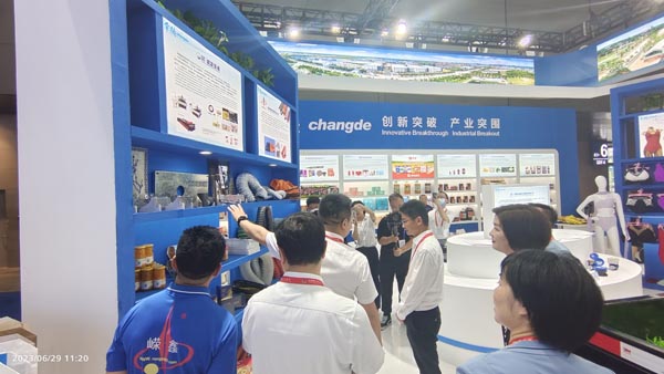 博览会期间,公司于E3常德产品推荐(形象)展馆搭设展示台,展出公司代理出口的切割机雕花样品、橘子罐头、洋甘蓟罐头等产品,并结合公司宣传册、视频、图片等多种形式展示公司外贸业务内容及对非合作交流意愿。展示期间,常德市委书记曹志强到公司展台巡看,并详细了解公司展区情况。